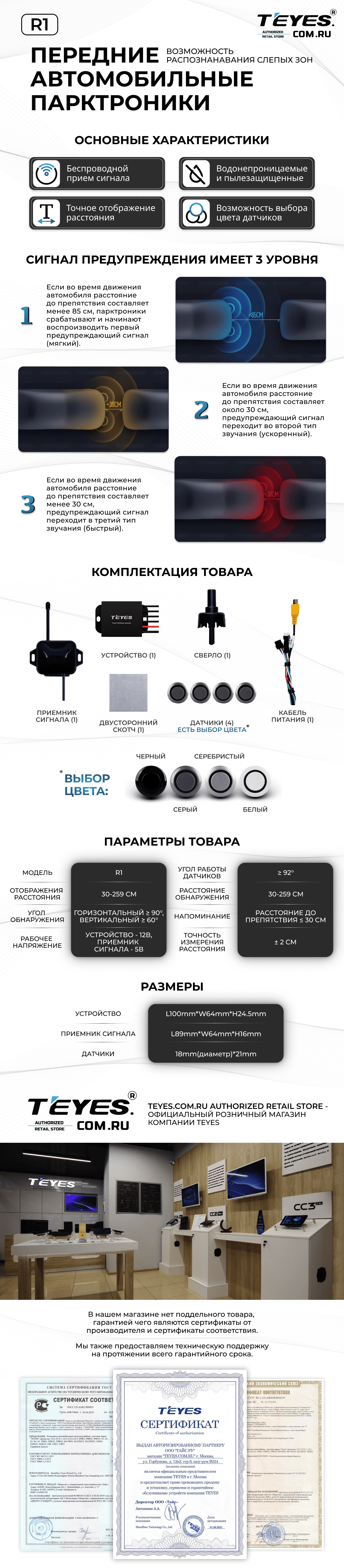 Передние парктроники Teyes R1 для CC4 Pro / CC4 / CC4L / CC3 2K / CC3 / CC3L / CC2 Plus / SPRO Plus / TPRO2 / LUX ONE (Серые) - купить всего за 12 900 руб. в интернет-магазине в Нижнем Новгороде Teyes.com.ru. ✓ Самый лучший выбор мультимедиа ✓ Лучшая замена штатному ГУ ✓ Тел. +7 (800) 775-31-74