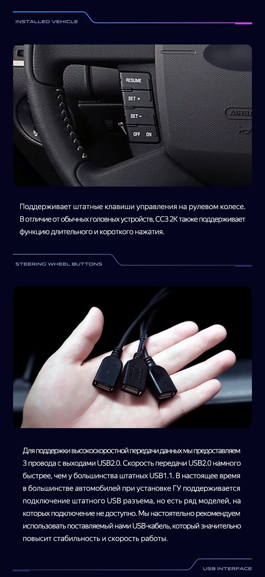 - Удобное и практичное управление голосом с возможностью реализовать 30 команд, отданных русским языком. Это обеспечивает управление основными штатными системами без отвлечения от управления авто. Среди доступных функций ; музыка, карты, навигация и телефонный разговор, возможность отслеживания состояния транспорта при его передвижении.