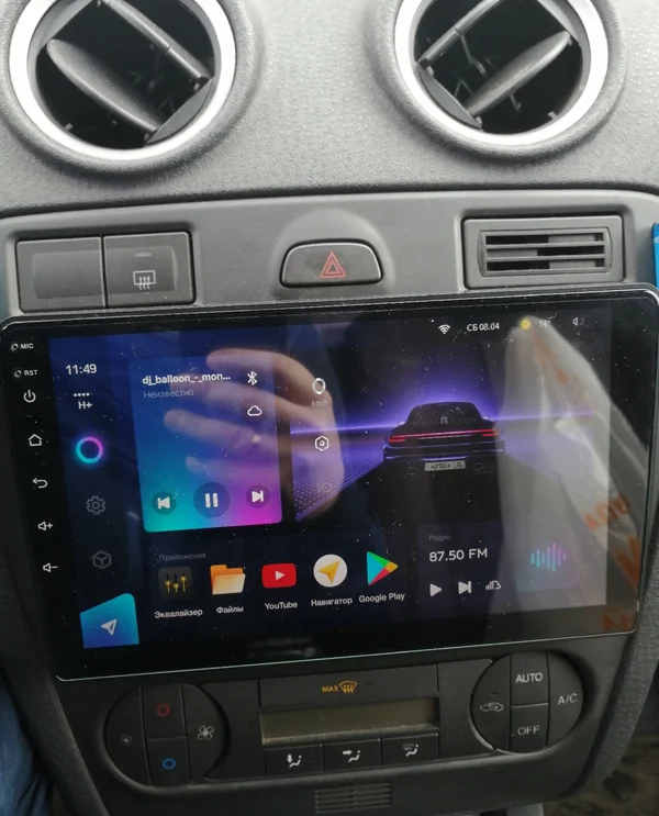 Защитное стекло 2,5D имеет слегка скругленные грани. Эта особенность делает его практически незаметным в районе краев экрана магнитолы, где он ограничен рамками корпуса.