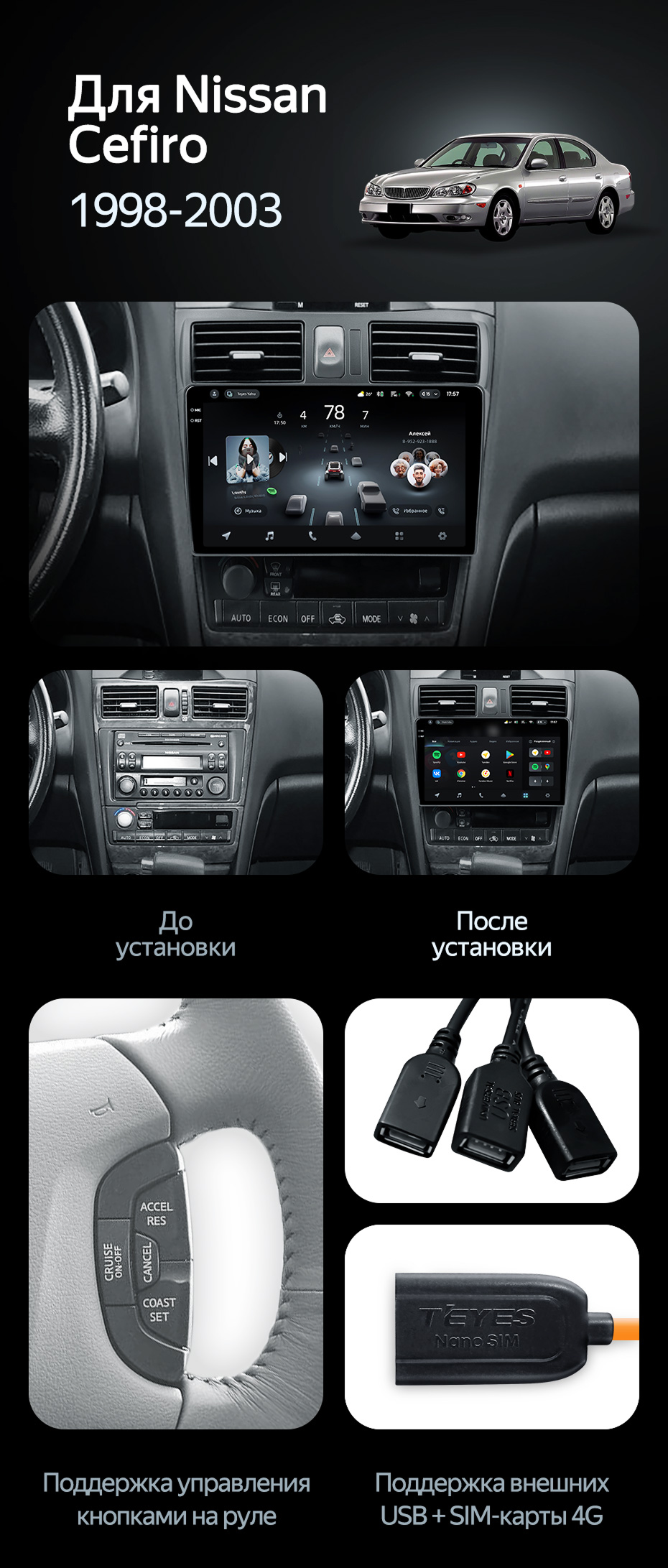 Штатная магнитола Teyes CC3 4/32 Nissan Cefiro 3 A33 (1998-2003) F2 - купить всего за 37 400 руб. в интернет-магазине в Нижнем Новгороде Teyes.com.ru. ✓ Самый лучший выбор мультимедиа ✓ Лучшая замена штатному ГУ ✓ Тел. +7 (800) 775-31-74