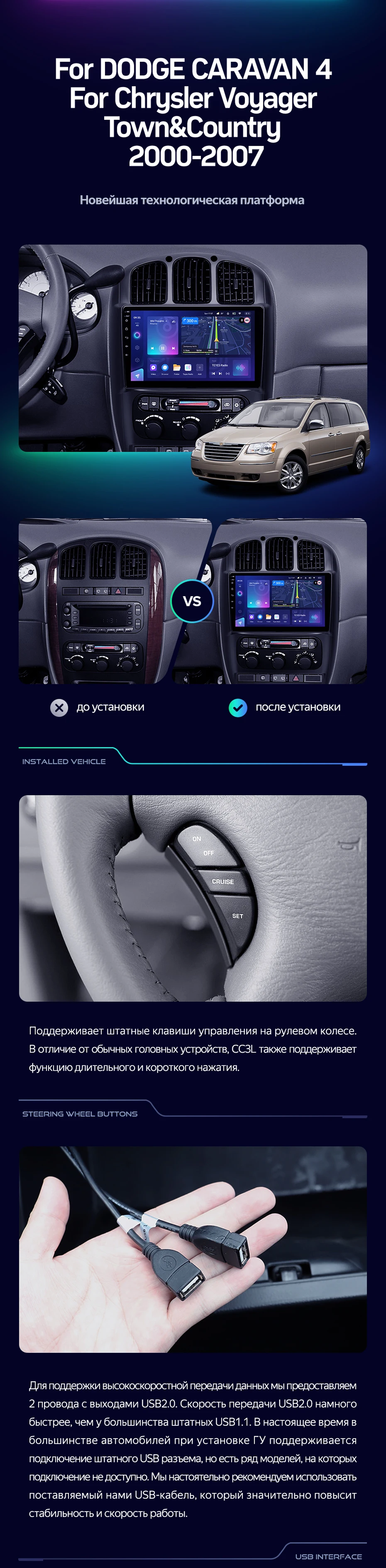 Штатная магнитола Teyes CC3L 4/64 Chrysler Town & Country 4 RS (2000-2007) Тип-B - купить всего за 27 700 руб. в интернет-магазине в Нижнем Новгороде Teyes.com.ru. ✓ Самый лучший выбор мультимедиа ✓ Лучшая замена штатному ГУ ✓ Тел. +7 (800) 775-31-74
