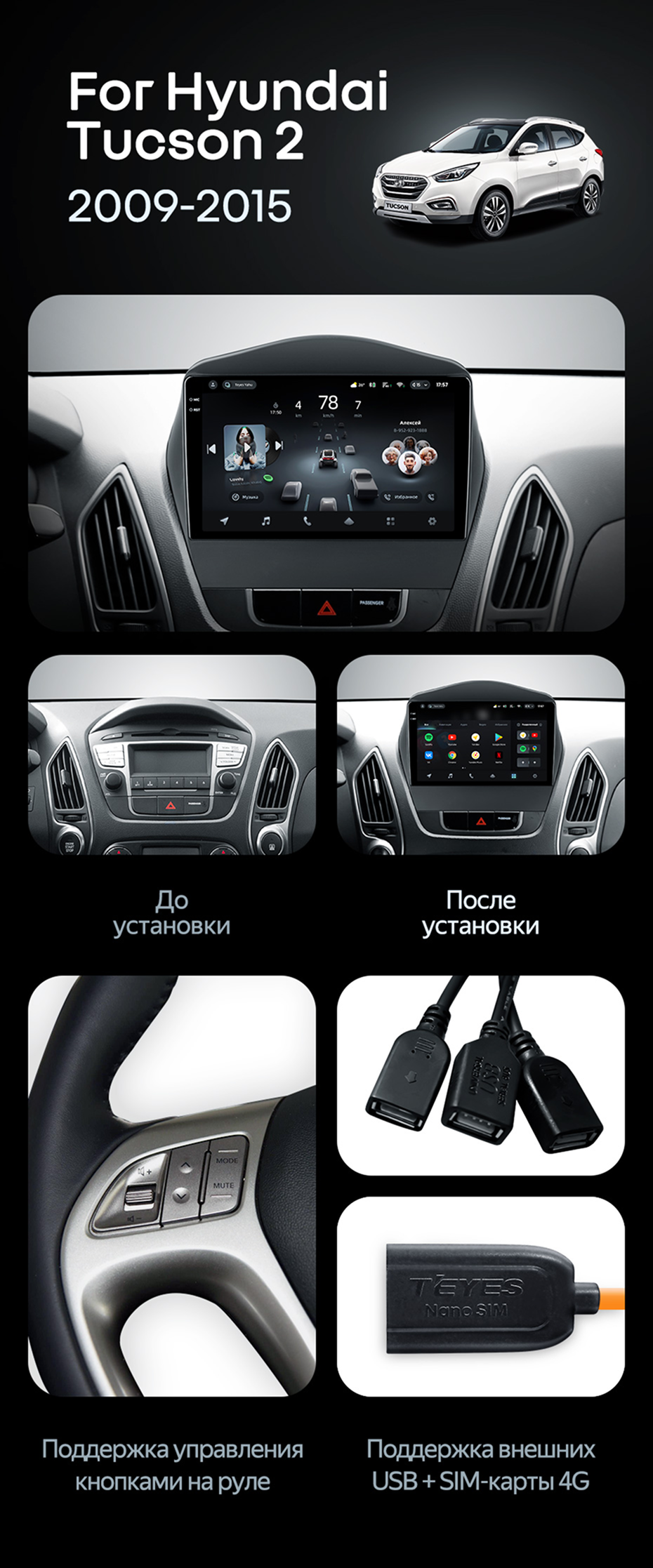 Штатная магнитола Teyes CC4 Pro 12/256 Hyundai ix35 (2009-2015) (Tucson 2) Тип-C - купить всего за 65 510 руб. в интернет-магазине в Нижнем Новгороде Teyes.com.ru. ✓ Самый лучший выбор мультимедиа ✓ Лучшая замена штатному ГУ ✓ Тел. +7 (800) 775-31-74