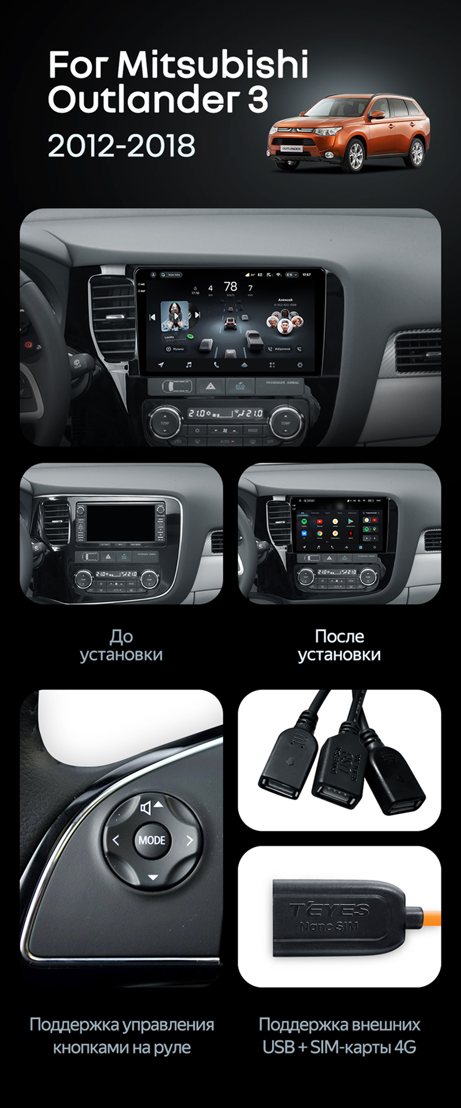 Штатная магнитола Teyes CC4 Pro 12/256 Mitsubishi Outlander 3 GF0W GG0W (2012-2018) Тип-B - купить всего за 66 510 руб. в интернет-магазине в Нижнем Новгороде Teyes.com.ru. ✓ Самый лучший выбор мультимедиа ✓ Лучшая замена штатному ГУ ✓ Тел. +7 (800) 775-31-74