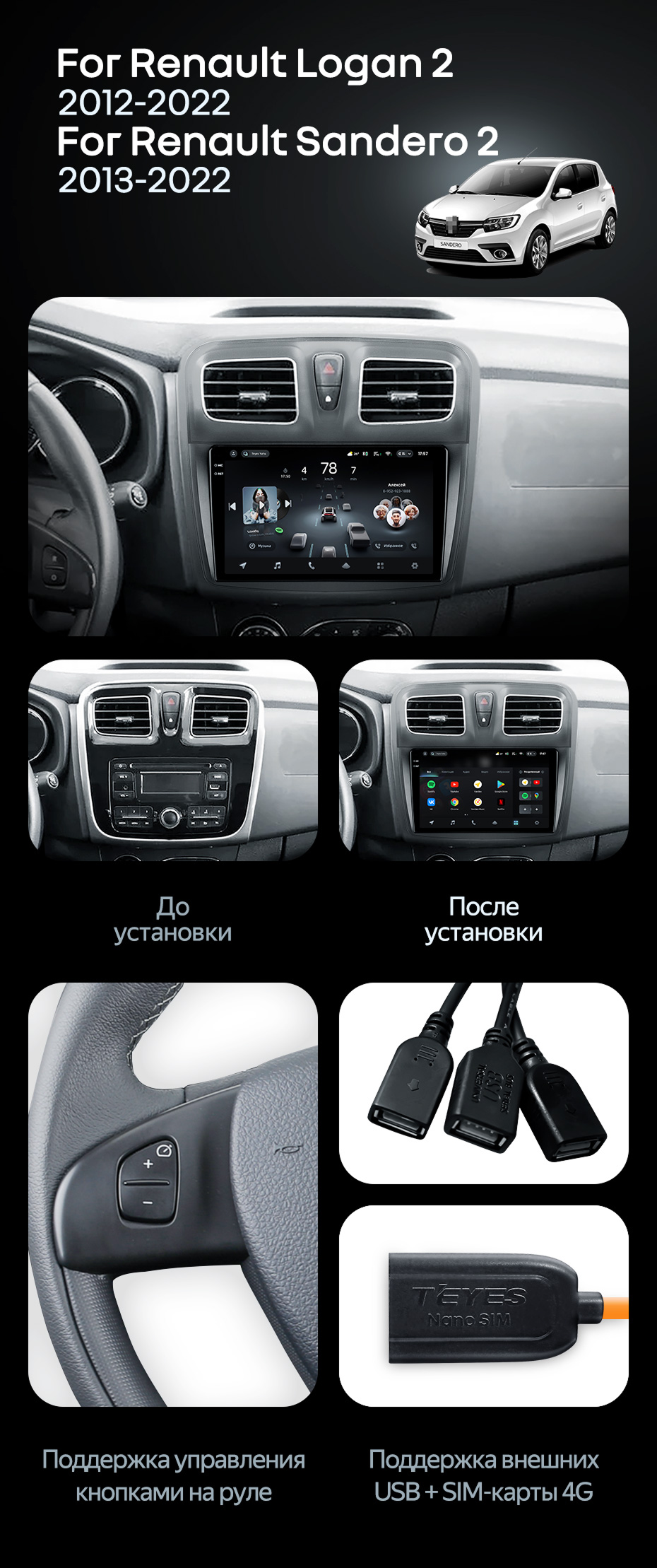 Штатная магнитола Teyes CC4 Pro 12/256 Renault Logan 2 (2012-2022) F2 - купить всего за 64 030 руб. в интернет-магазине в Нижнем Новгороде Teyes.com.ru. ✓ Самый лучший выбор мультимедиа ✓ Лучшая замена штатному ГУ ✓ Тел. +7 (800) 775-31-74