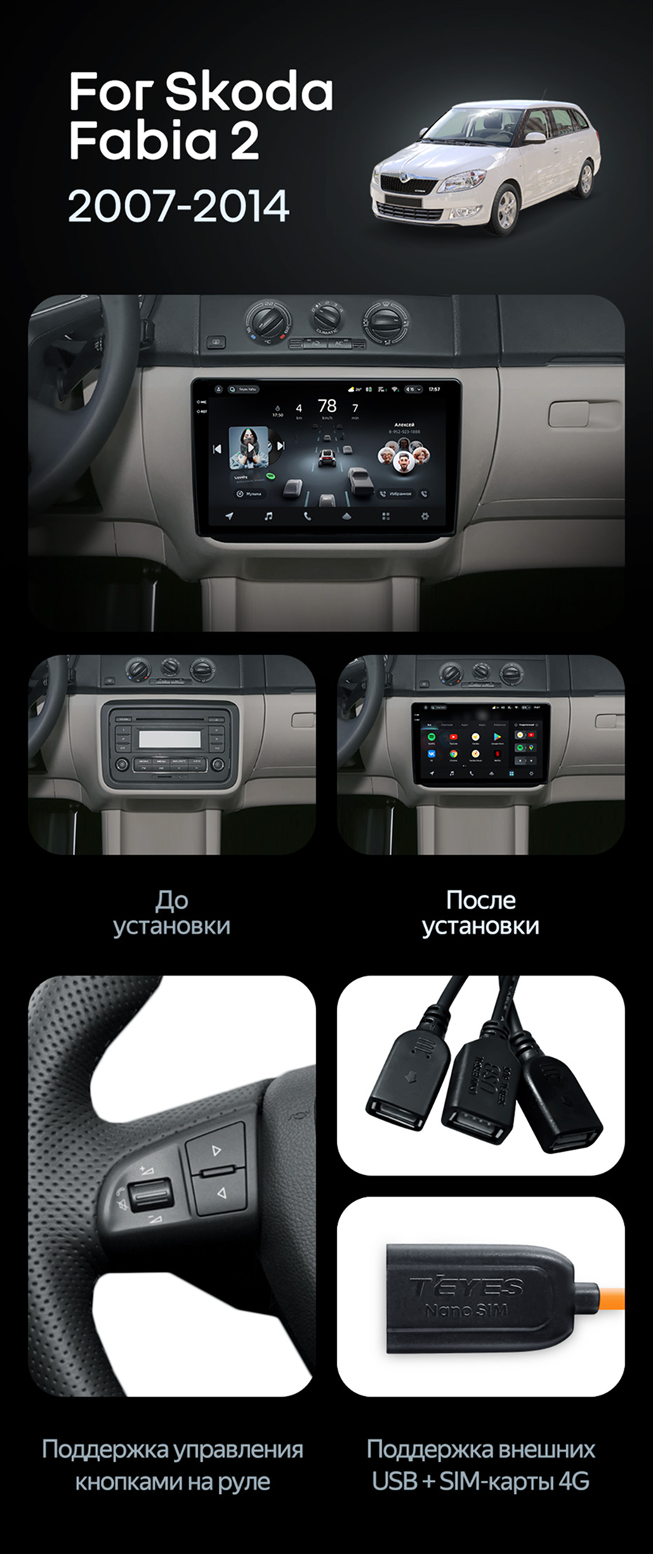 Штатная магнитола Teyes CC4 Pro 12/256 Skoda Fabia 2 (2007-2014) (13") - купить всего за 81 450 руб. в интернет-магазине в Нижнем Новгороде Teyes.com.ru. ✓ Самый лучший выбор мультимедиа ✓ Лучшая замена штатному ГУ ✓ Тел. +7 (800) 775-31-74