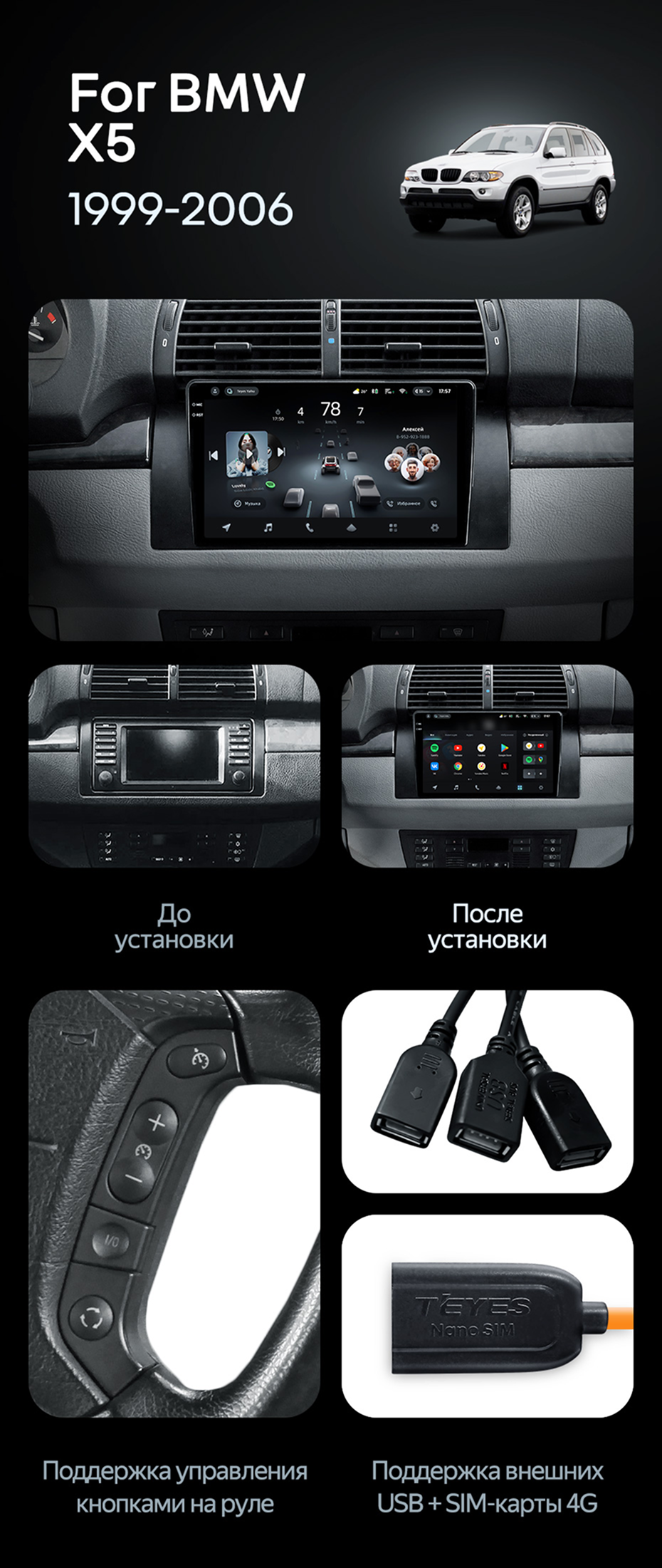 Штатная магнитола Teyes CC4 Pro 8/128 BMW X5 E39 E53 (1999-2006) - купить всего за 65 420 руб. в интернет-магазине в Нижнем Новгороде Teyes.com.ru. ✓ Самый лучший выбор мультимедиа ✓ Лучшая замена штатному ГУ ✓ Тел. +7 (800) 775-31-74