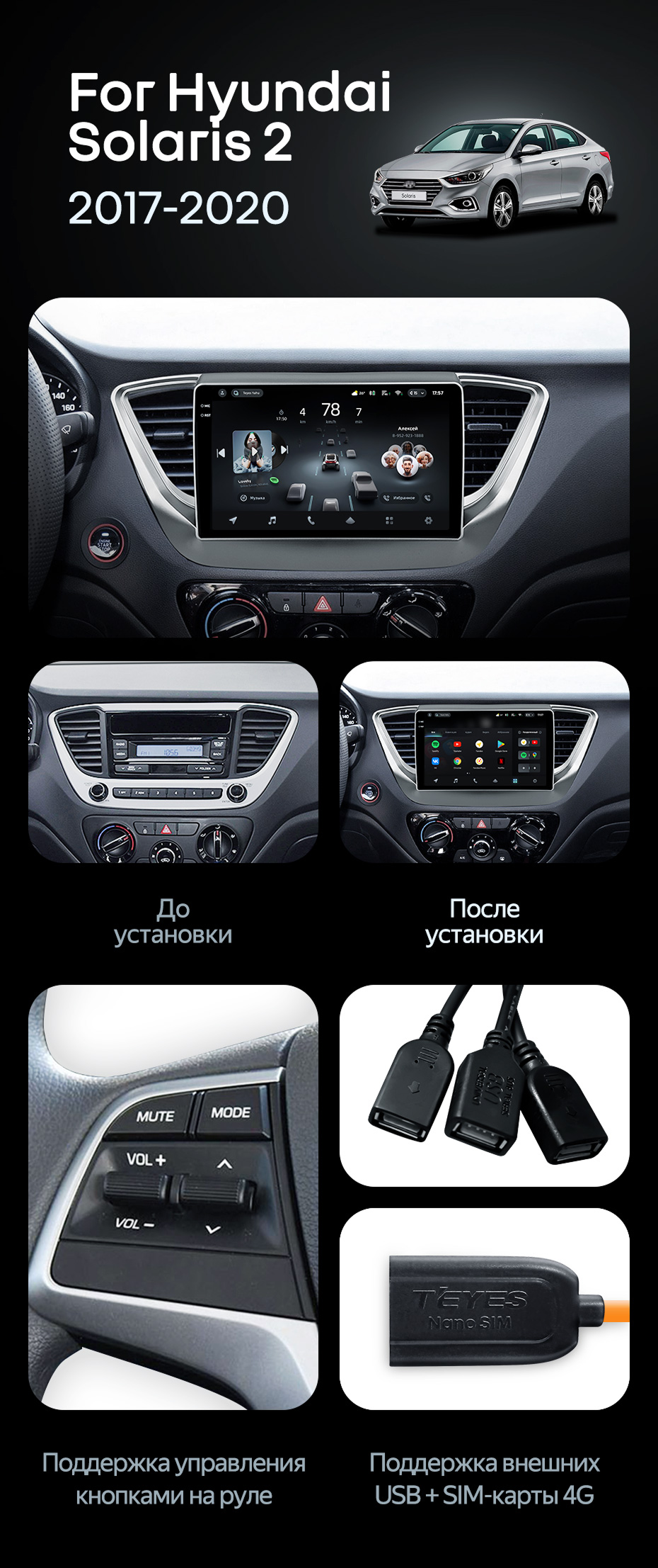Штатная магнитола Teyes CC4 Pro 8/128 Hyundai Solaris 2 (2017-2020) F1 Тип-A - купить всего за 55 300 руб. в интернет-магазине в Нижнем Новгороде Teyes.com.ru. ✓ Самый лучший выбор мультимедиа ✓ Лучшая замена штатному ГУ ✓ Тел. +7 (800) 775-31-74