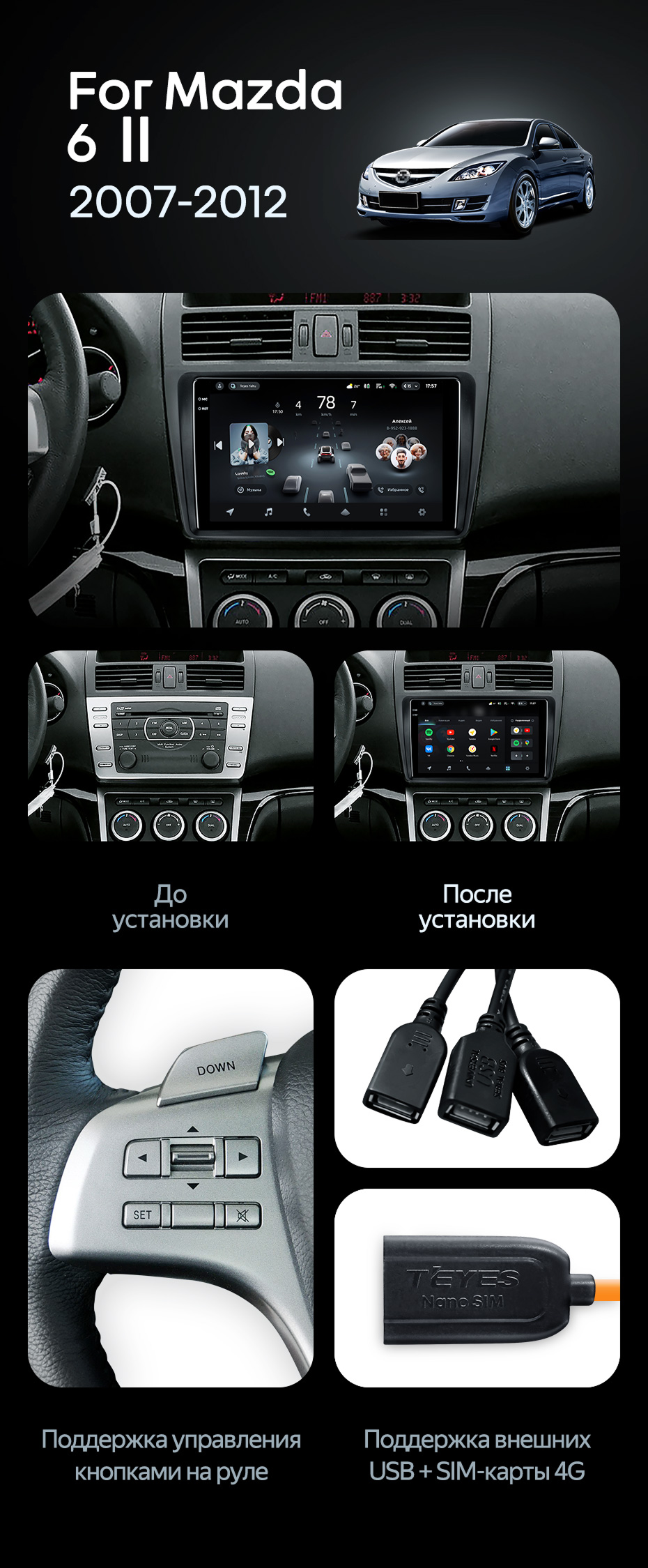 Штатная магнитола Teyes CC4 Pro 8/128 Mazda 6 2 GH (2007-2012) - купить всего за 64 270 руб. в интернет-магазине в Нижнем Новгороде Teyes.com.ru. ✓ Самый лучший выбор мультимедиа ✓ Лучшая замена штатному ГУ ✓ Тел. +7 (800) 775-31-74
