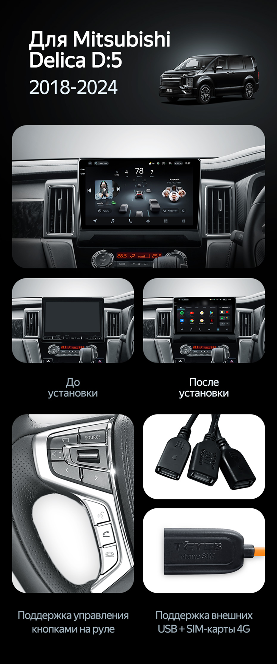 Штатная магнитола Teyes CC4 Pro 8/128 Mitsubishi Delica D:5 (2018-2024) - купить всего за 54 970 руб. в интернет-магазине в Нижнем Новгороде Teyes.com.ru. ✓ Самый лучший выбор мультимедиа ✓ Лучшая замена штатному ГУ ✓ Тел. +7 (800) 775-31-74