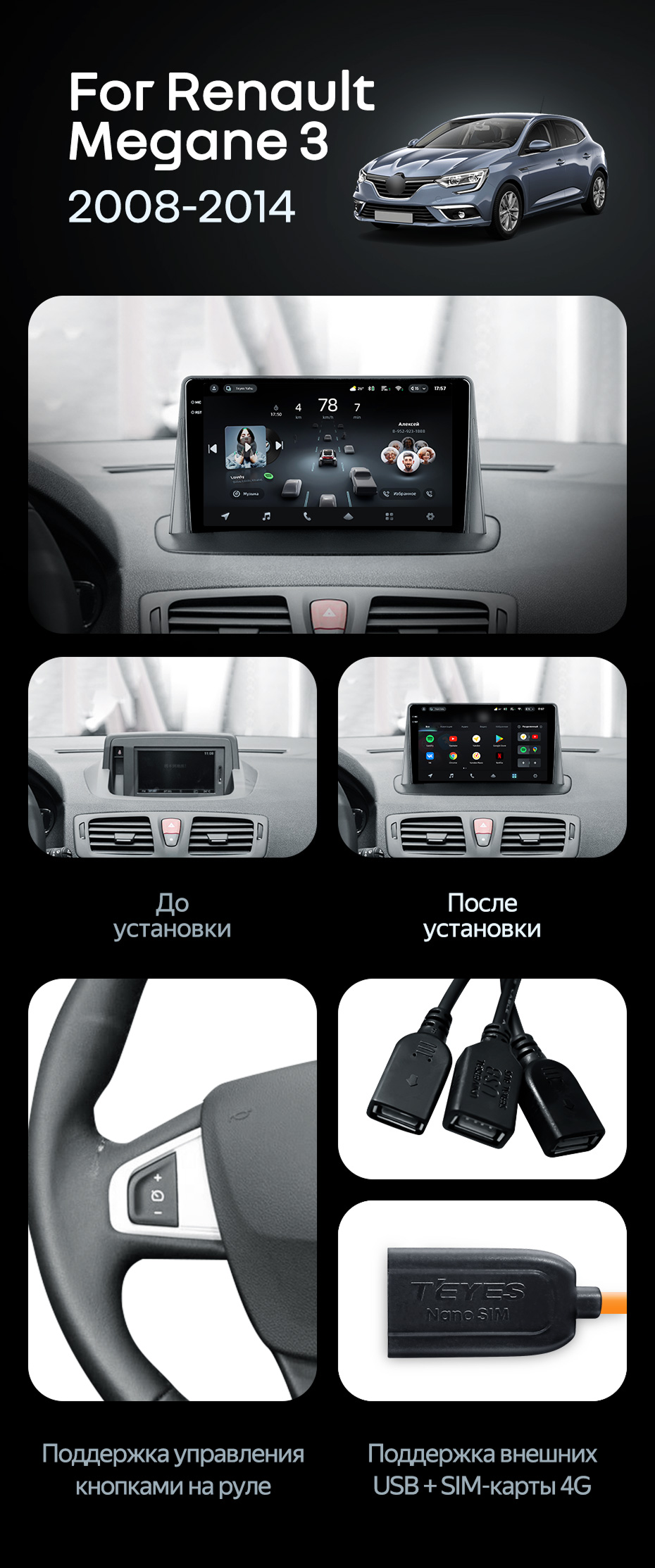 Штатная магнитола Teyes CC4 Pro 8/128 Renault Megane 3 (2008-2014) - купить всего за 65 440 руб. в интернет-магазине в Нижнем Новгороде Teyes.com.ru. ✓ Самый лучший выбор мультимедиа ✓ Лучшая замена штатному ГУ ✓ Тел. +7 (800) 775-31-74