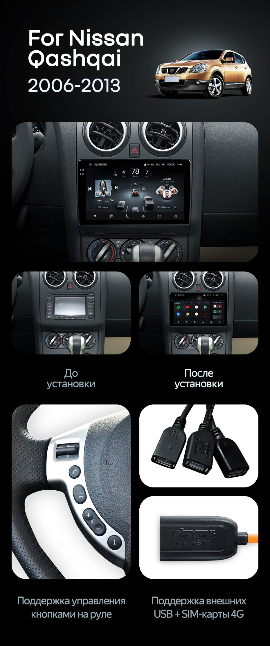 Штатная магнитола Teyes CC4L 6/64 Nissan Qashqai 1 J10 (2006-2013) F1 - купить всего за 30 500 руб. в интернет-магазине в Нижнем Новгороде Teyes.com.ru. ✓ Самый лучший выбор мультимедиа ✓ Лучшая замена штатному ГУ ✓ Тел. +7 (800) 775-31-74